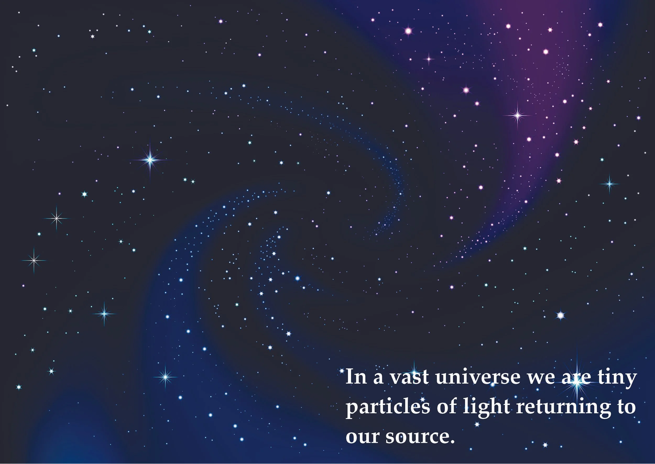 In a vast universe we are tiny particles of light returning to our source. The Divine energy or presence that pervades everything in the universe is full of light. We are waking in light. This is not a physical light, but a reflection of the infinite divine energy emerging from infinity.