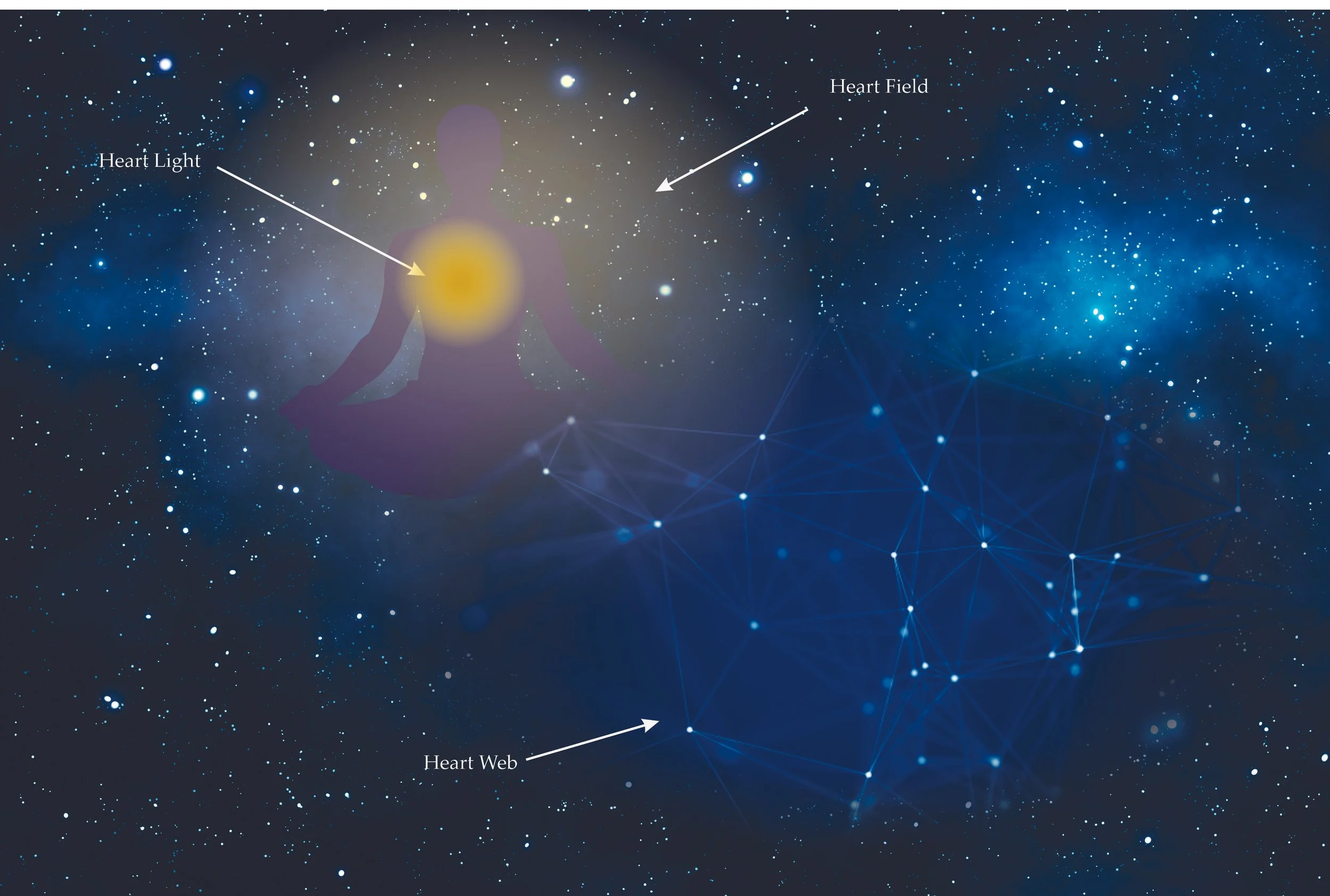 The Heart Web is simply the network of light that the Heart Field connects with. This network does not only span the planet, but all creation, across all levels: physical creation, astral creation; and causal creation[2]. It connects our light, the light of atma, with all other beings. Collectively we make Paramatma, the supreme One that is all and yet beyond all. Most often we connect with the planetary web. When our field is attuned the influence of the Great Rishis and Masters can be felt. It is also how these wise ones communicate across the planet and the cosmos.