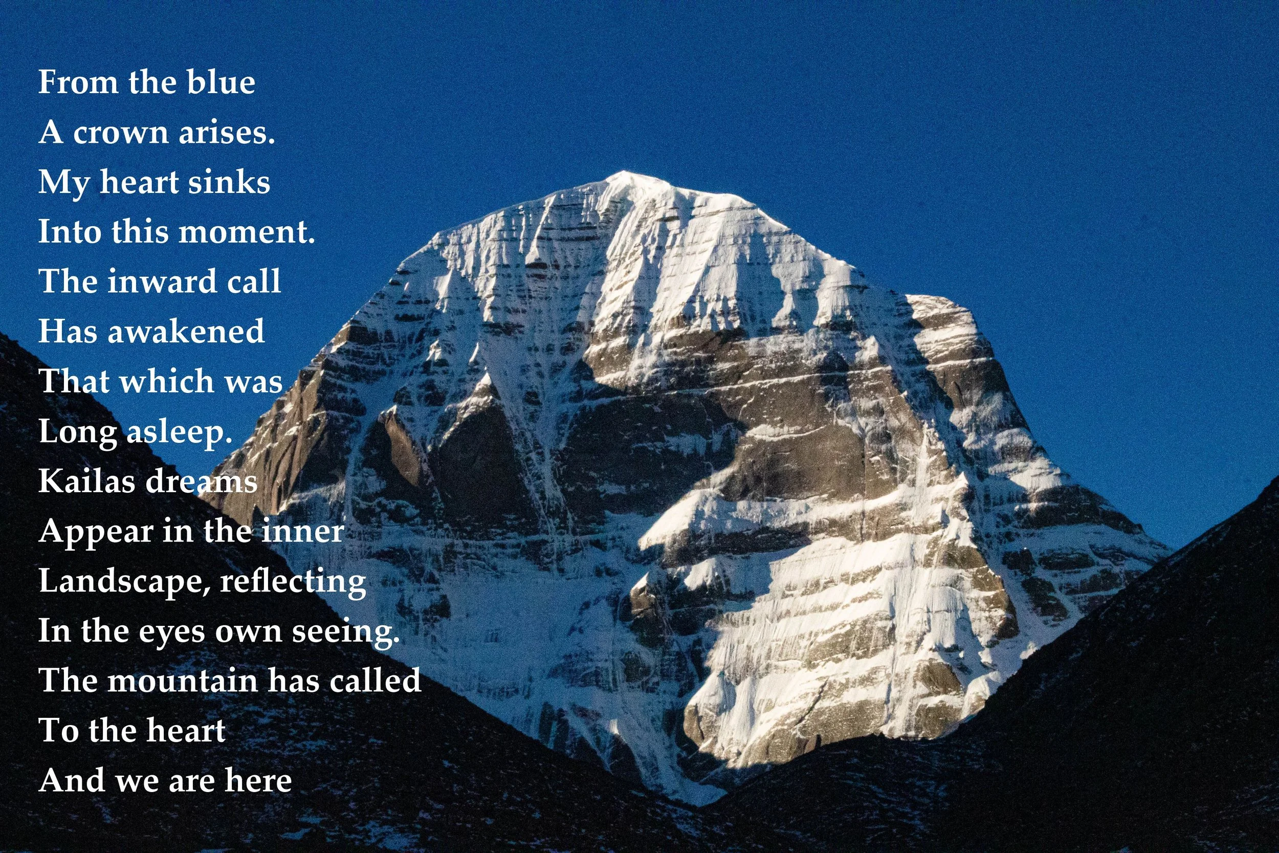 In ancient Earth, Kailasa was born, possibly out of volcanic activity underground. This was prior to the formation of the Himalayas, which occurred through the clash of two tectonic plates. It is said that in those times dharma (conscious living in accord with the universal order) was born. Kailasa is mentioned in the Vedas, although it is called Mount Meru in those hymns. Kailash or Kailasa is mentioned in other ancient Indian texts, such as the Upanishads (philosophical writings) and Puranas (ancient stories). It is known as the abode of Shiva (pure consciousness) for Hindus and Vedantins.
