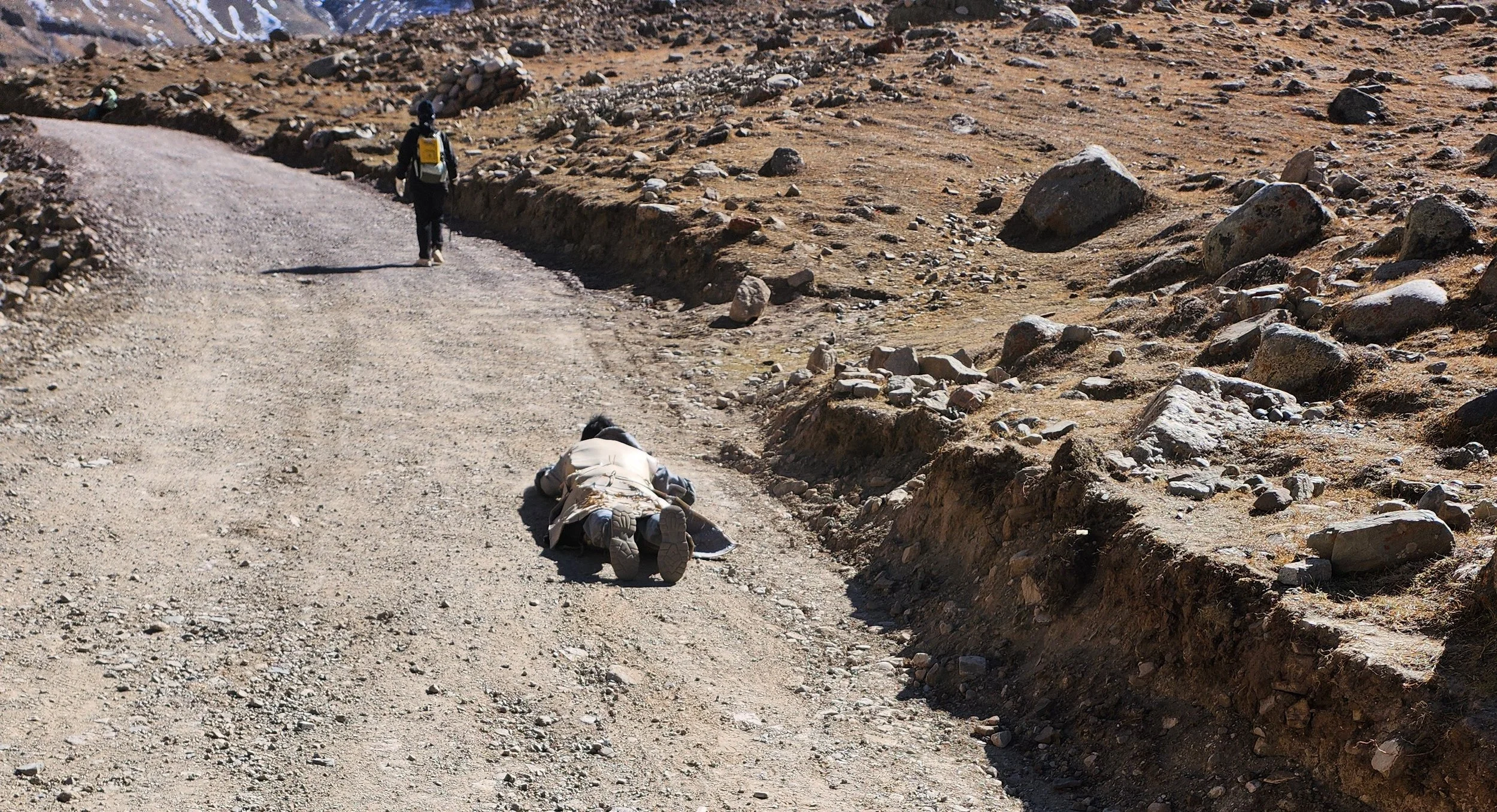Pilgrim undertaking the Kora by prostration