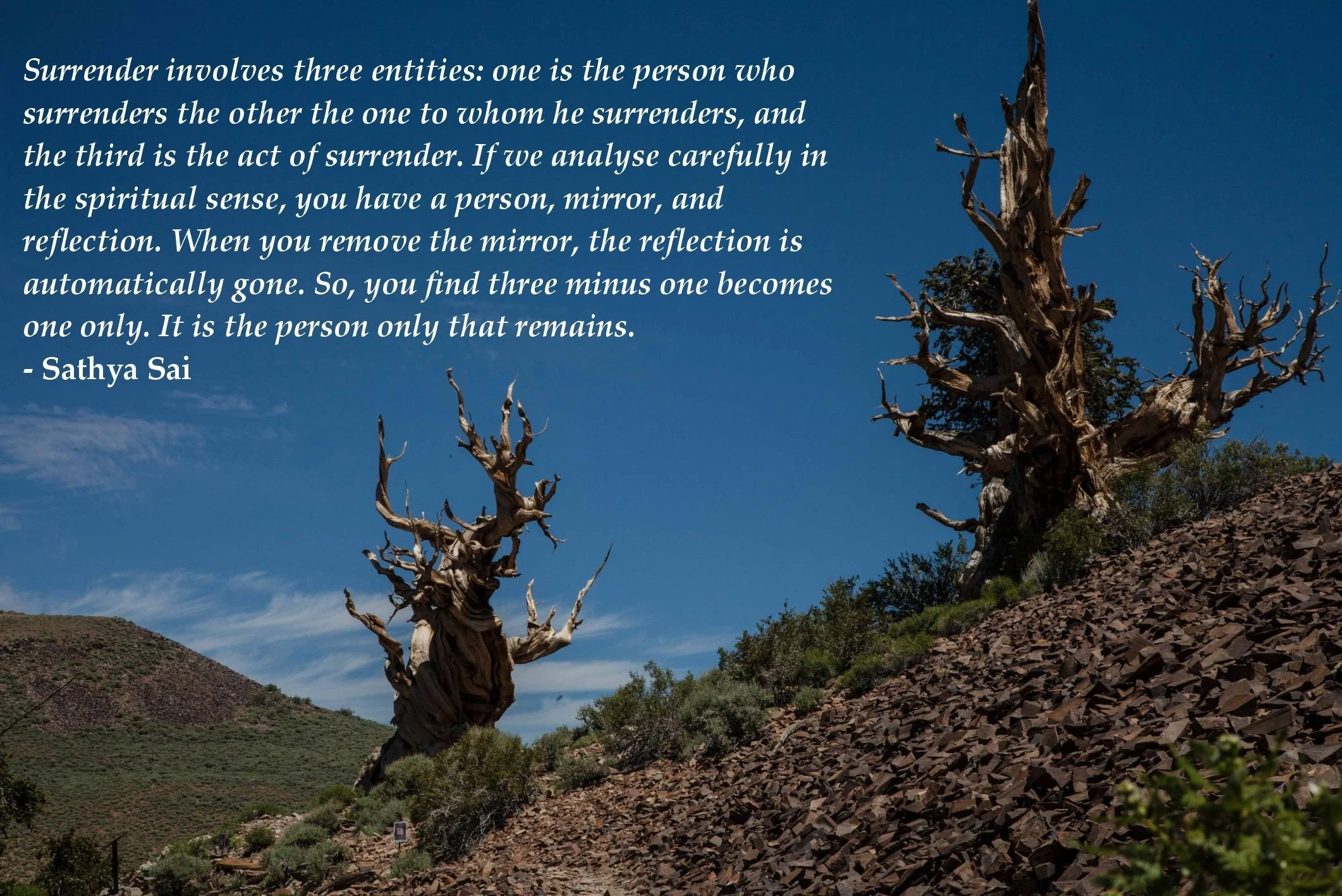 To surrender, is to recognise that there is something beyond that which we believe we are. It is not an external surrendering, but an inner deconstruction of our own perception of ourselves. In my experience, it is a process, often long and difficult, often painful (but with glimpses of joy).