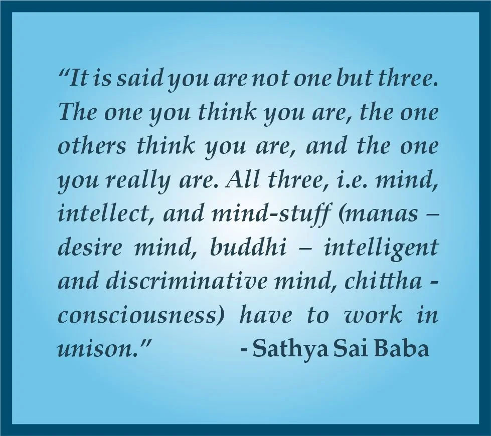 Others of us feel comfortable in our own constructions until crises occur. Such crises are blessings in disguise. They may be health crises, relationship crises, work crises or the crisis may come from another source, such as a major accident. I have a friend who was living the ‘good life’, partying, taking drugs and alcohol, promiscuouity, etc. He had created an image of himself that was hedonistic and focused on the senses. However, one of his passionate pursuits led to a radical shift in his perspective on life. After a serious motorbike accident, he had surgery. During the surgery he found himself outside the body, experiencing a samadhi state wherein he felt he was everything and everything was him. When he was resuscitated, he found himself back in the body with tears streaming down his face for the loss of that pure state of consciousness. This was a crisis but a blessing, turning his life to spirituality. It was then his heart turned to India, and he began to study the teachings of the Masters, namely Ramana Maharshi and Nisargadatta, eventually leading him to Prasanthi Nilayam and Sathya Sai. This is where he and I met and I heard his story. Crises may not necessarily so dramatic. They may be that that we are simply faced with a decision about who we want to be. This type of crisis can also turn into a shift in our lives.