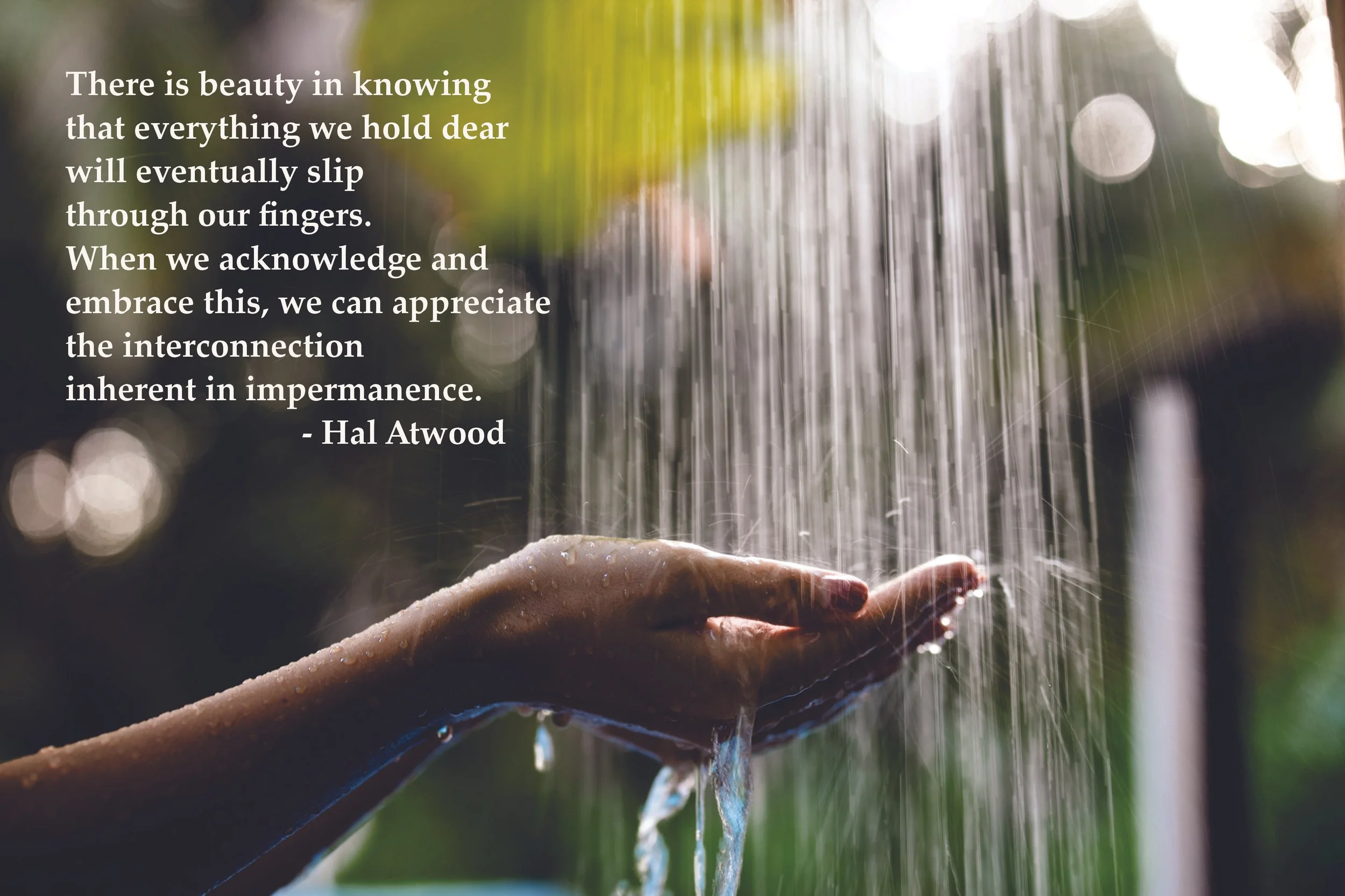 We cannot reverse impermanence. Time always moves forward and changes everything. What we can do is ‘flow with the changes’, surrendering to what is. This is not a passive resignation, but an active letting go.