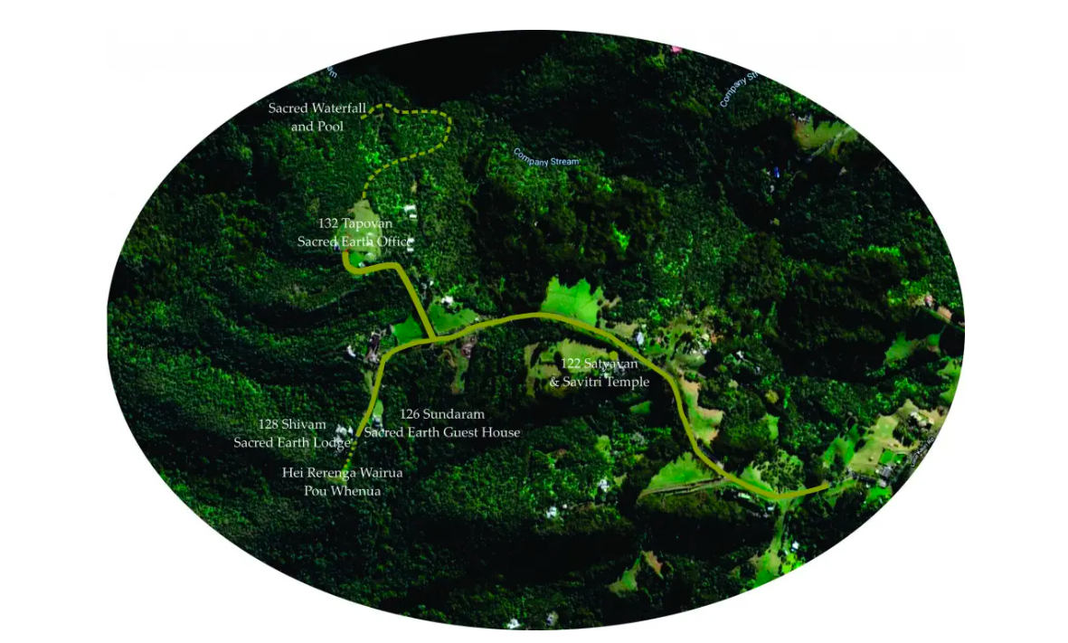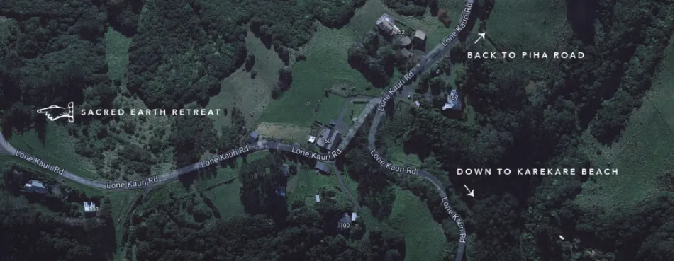 Take the Piha Road (off Scenic Drive) drive for 5 kilometers. The first road on the left is Lone Kauri Rd. Whilst it states residents only, you are able to access Sacred Earth via this road. Drive 5 kilometers until you see a sign for the Fire Station (on the right). Take this private road, past teh fire station and keep right all the way until you come to a T junction. Take the right road and you will see a sign saying Tapovan |Forest Retreat 132 on the left. Come down this driveway and Sacred Earth office is on the right at end of this driveway.